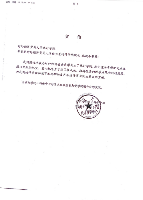 暨南大学经济学院统计学习贺信
