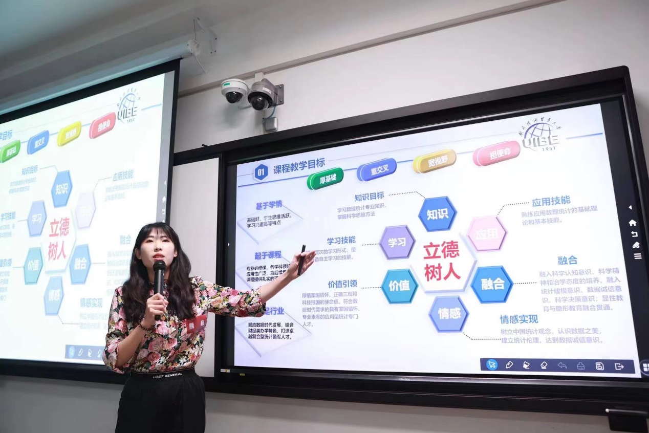据悉,由中国高校财经慕课联盟主办、上海财经大学承办的“数理统计”同课异构课程思政教学竞赛于10月14日-15日在上海财经大学举行。来自全国财经类院校27位参赛选手推荐参加复赛,复赛分四组进行,26位评审专家参加评审,每组前2名共8名参赛教师进入决赛;决赛评委由4位特邀嘉宾和21位评审专家组成,通过提问和打分评选大赛一等奖。最终评选一等奖5人,二等奖11人,三等奖11人。