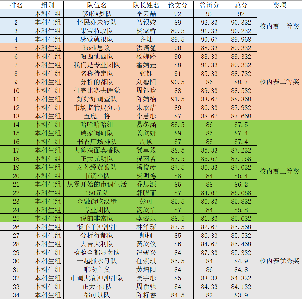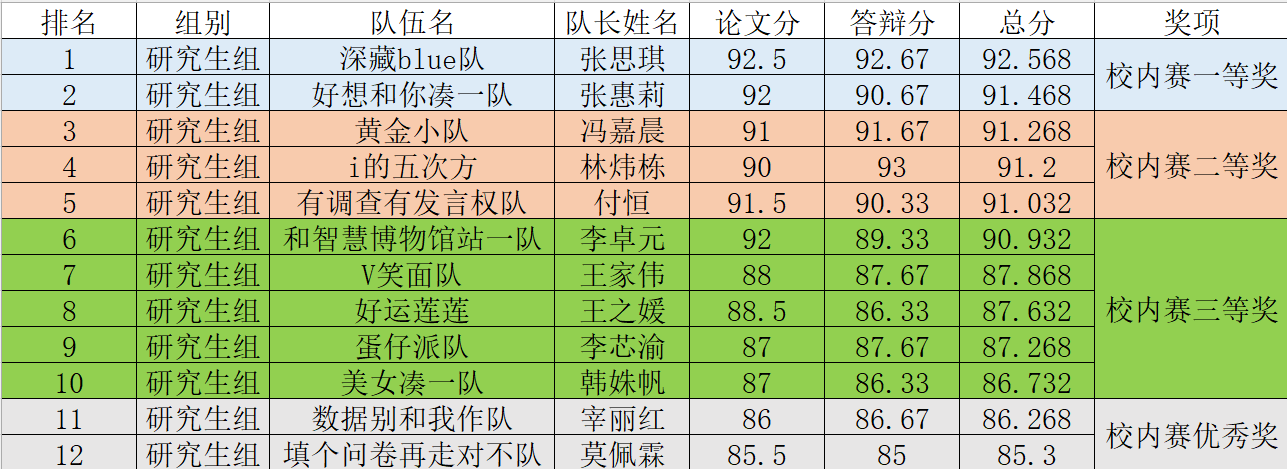 根据评分结果,获奖队伍情况如下: