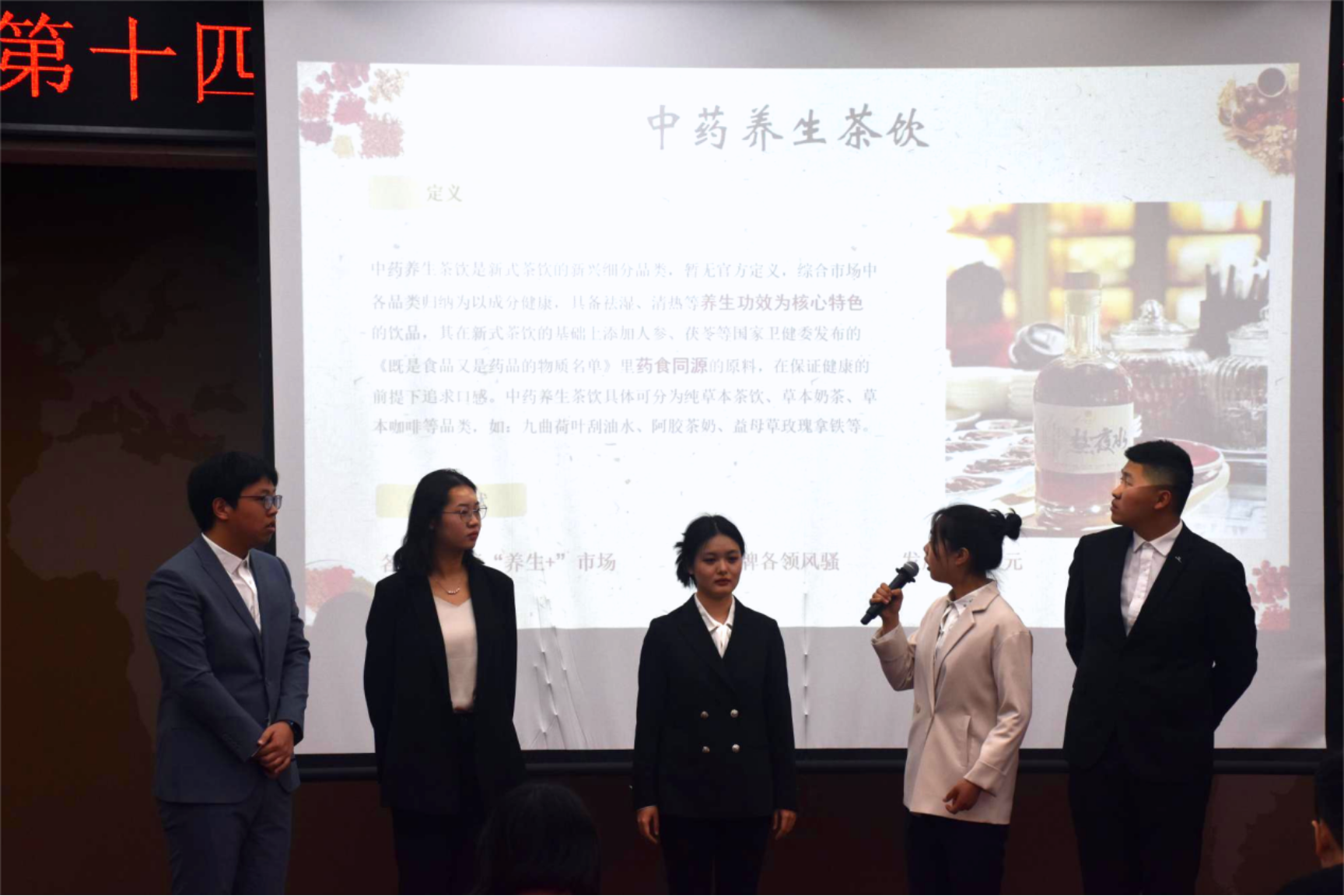 参与本次答辩的队伍选题角度新颖、调查内容详实。“哆啦A梦队”率先进行答辩展示,该组以北京市中药养生茶饮为调研主题,针对其行业现状及前景做深入的分析和阐释。其后各小组的答辩展示也各有千秋:“怀民亦未寝队”针对地理标志产品京白梨的调查充分细致、结论明确;“进淄赶烤”的主题令现场听众眼前一亮……评委老师们也根据选手不同的选题给出了针对性的指导意见,引导学生们进行更为深入的思考,希望各队伍继续完善调查与分析,在未来的比赛环节中再创佳绩。
