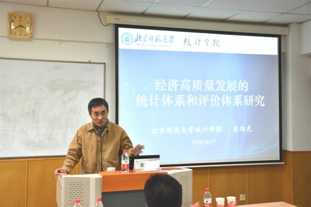 10月17日下午15:30,北京师范大学金沙8888js官方宋旭光教授受邀,于诚信楼715教室带来题为“经济高质量发展的统计体系和评价体系研究”的报告。经济统计学专业2019级本科生和研究生参加本次报告。