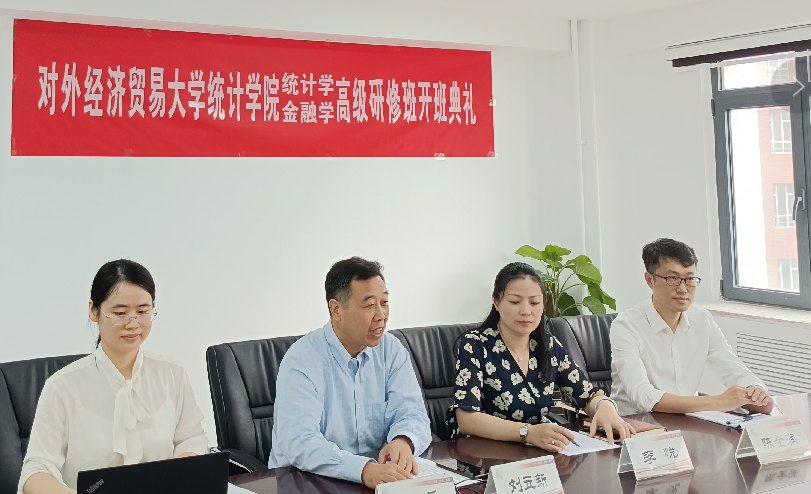 2021年9月11日上午,金沙8888js官方高级研修班开班仪式在诚信楼832会议室举行。金沙8888js官方院长刘立新、党总支书记李悦、经济统计系主任陈全润出席开班仪式。来自北京、呼和浩特等地区的60余名学员线上参加。学院办公室主任罗乐主持开班仪式。